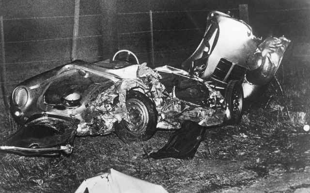 Pada bulan September tahun 1955, James Dean tewas dalam kecelakaan mobil yang begitu mengerikan saat ia mengemudikan mobil Porche sport miliknya. Sesudah itu mobil tersebut tampaknya menjadi mobil pembawa sial. Saat mobilnya diderek dari tempat kejadian dan dibawa ke garasi, mesinnya copot dan jatuh mengenai mekaniknya, dan menghancurkan kedua kaki mekanik tersebut. Akhirnya mesinnya dibeli oleh seorang doctor, yang memasangnya di mobil balapnya dan tewas seketika, saat dia balapan. Begitu juga dengan pembalap lain pada saat balapan yang sama, tewas dimobilnya, yang dipasangi poros kardan milik James Dean. Lalu kemudian tempat dimana porche milik James Dean yang diperbaiki, yaitu di sebuah garasi, rusak terbakar habis. Dan emudian mobil itu dipamerkan di Scramento, namun tiba-tiba rusak berantakan dan melukai pinggul seorang remaja. Sementara di Oregon, trailer dimana mobil itu diperbaiki terselip dan menghantam sebuah toko. Pada akhirnya, tahun 1959, secara misterius mobil itu rusak dengan keadaan berantakan menjadi 11 bagian.